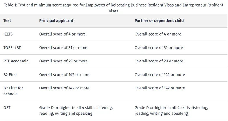 When you are applying for a Entrepreneur Resident Visa or Employees of Relocating Business Resident Visa, you must demonstrate that you, your partner and any dependent children can speak and understand English.